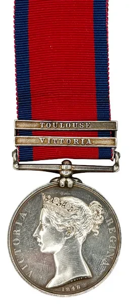 General Alexander Fisher MacIntosh, K.H., of Dunchattan, entered the Army as a Cornet in the 14th Light Dragoons on 21.10.1811 before purchasing a Lieutenancy in the 3rd (Prince of Wales's) Dragoons on 11.6.1812. He joined the 3rd Dragoon Guards in the Peninsula in August 1812 just as Wellington's Army, fresh from its great victory at Salamanca, entered Madrid which had been under French occupation since 1808. With the reverse to Allied fortunes at the end of the year, however, MacIntosh saw action at Alba-de-Tormes, the retreat to Ciudad Rodrigo and the action of San Munos. He further participated in the skirmish at the re-crossing of the Tormes, and the attack on the French Rearguard under General Eugene Villate, the action at Hormaza before Burgos, and the Battle of Vittoria on 21.6.1813, where the 3rd Dragoon Guards made several charges late in the day to hasten the enemy's retreat. He next took part in the investment of Pamplona but was in reserve with his Regiment at the Battle of the Pyrenees where the country was unsuitable for Cavalry operations. He 'further distinguished himself at Tarbes and in the Cavalry action at St. Gaudens' and was present at the Battle of Toulouse on 10.4.1814. At the conclusion of the War in June the 3rd Dragoon Guards marched north through France to Calais and sailed for England on 20 July.