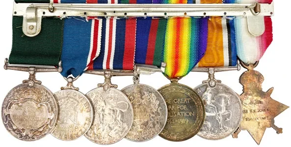 Group of seven to Captain C. E. Jones, Royal Hamilton Light Infantry, late 19th Battalion, Canadian Infantry, who was wounded in the back at the Battle of Vimy Ridge